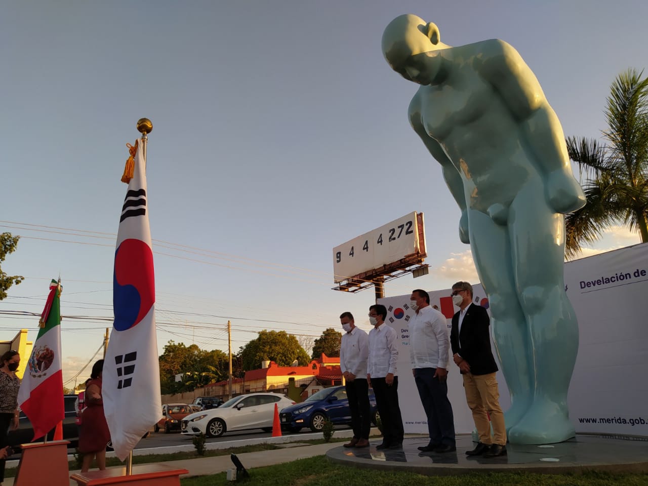 Este miércoles, Mérida se convirtió en una de las siete ciudades en contar con un Greetingman; y es la única en México. El monumento de seis metros de alto se erigió en uno de los extremos de la avenida de República de Corea como muestra de amistad entre ambas naciones.