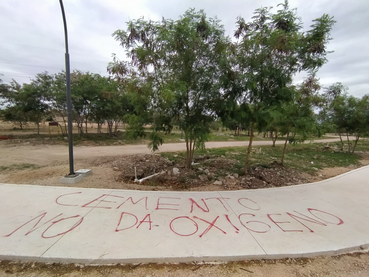 Hasta el momento los trabajadores del parque Paseo Henequenes no han recibido la orden para borrar los mensajes de protesta, pero se espera que sea en las próximas horas cuando se les indique y procedan a su remoción.
